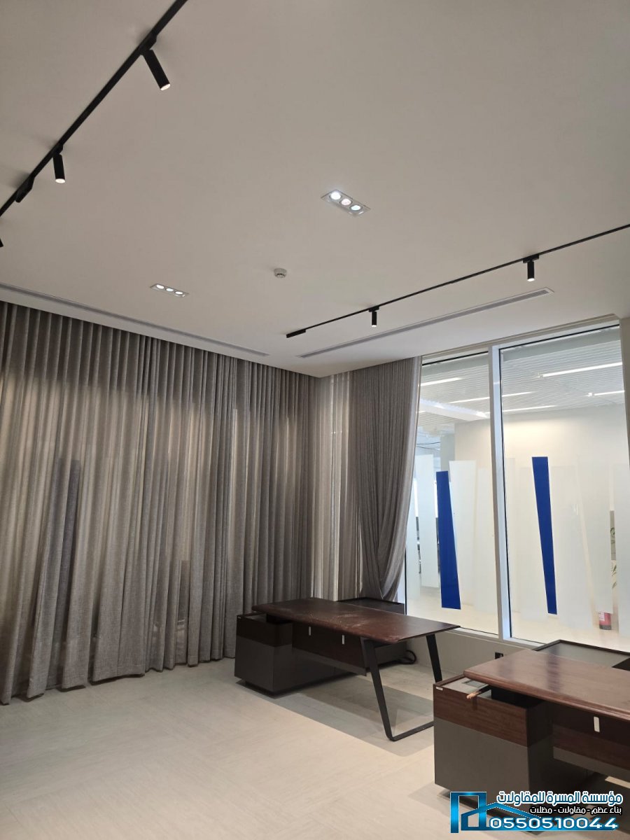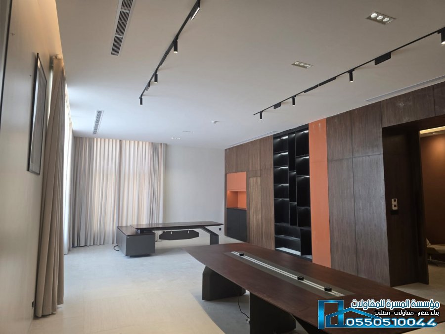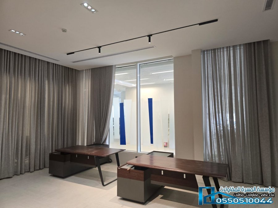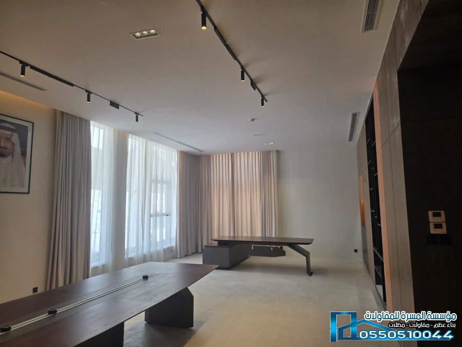 شركة المسرة للمقاولات العامة تسعى جاهدة لتحقيق رؤية العميل وتقديم المكاتب و المنازل والمباني العصرية وذات جودة عالية. يجب التواصل المباشر مع الشركة للحصول على معلومات محدثة حول أسعارتشطيب المكاتب و بناء التسليم المفتاح والتفاصيل الدقيقة للعملية.